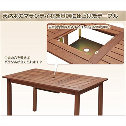 ●天然木マランティ材を基調に仕上げたテーブル ●天板中央の板を外すとコンロの設置が可能 ●お庭でのバーベキューが便利です ●コンロ部:幅41×37×16cm ●パラソルホール:直径5cm