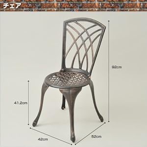 ●組立品です●組立時間:約20-30分●テーブル1卓とチェア2脚の3点セット●落ち着いたブラウン色のアルミガーデンセット●アルミ製で軽量●チェア座面高:41.2cm