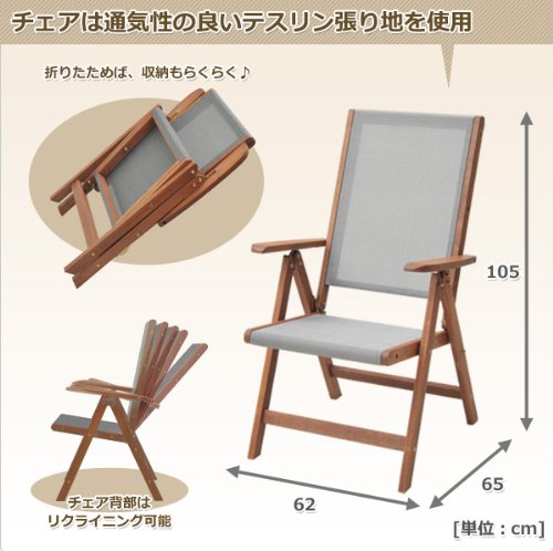 ●完成品です●折りたたみ式●折りたたみサイズ:幅62 奥行14 高さ90cm●背部は7段階リクライニング機能●座面高さ:42.5cm●座部はお手入れしやすいテスリン生地