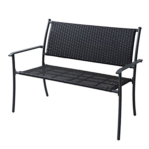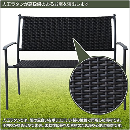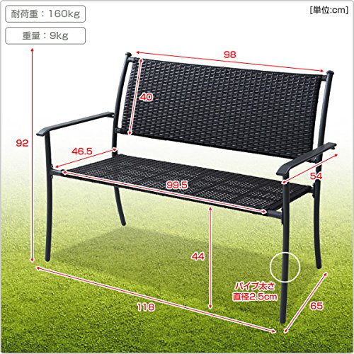 ●組立品です●組立時間:約10-20分●おしゃれなラタン調のガーデンベンチ●シンプルなスチールアーム●丈夫で美しいスチール製●お庭やベランダに最適●座面高さ:44cm●座部サイズ:幅99.5×奥行46.5cm●背部サイズ:幅98×高さ40cm●肘掛け長さ:54cm●耐荷重:160kg