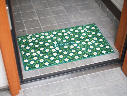 ●玄関周りを彩る可愛いウェルカムマット●屋内用(たたき)の玄関ラグマット。●ジェットプリントによる鮮やかなプリント柄のドアマットが玄関周りを明るく演出します。●表面にはヘタリにくく丈夫なナイロン繊維を使用し、砂・ホコリ・雨水もしっかりキャッチ。 除塵性、耐久性に優れています。●裏面は、磨耗耐久性に優れる塩化ビニール樹脂製。●水洗い・中性洗剤OK、お手入れラクラク。●サイズ(約):横75×縦45cm●材質:パイル部/ナイロン ベース/塩化ビニル樹脂●日本製