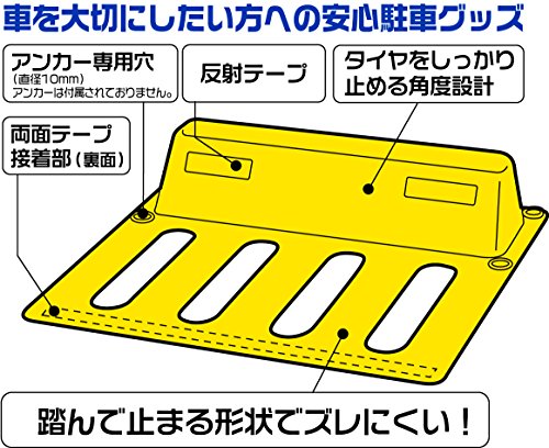 ●設置場所の状態によっては粘着層で固定されていても動いてしまう場合がある、正しい設置位置に目印などをし、駐車の際は本製品が正しい位置にあることを確認の上使用する事