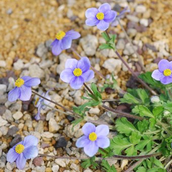 - ヒマラヤ(カシミール、ブータン)、ミャンマー、中国(チベット)の山地に自生します。藤色がかった青の花色が人気の花です。花期は長めで、株が大きくなると、春の間次々とつぼみが上がります。夏場は休みますが、うまくすると秋にも開花することもあります。