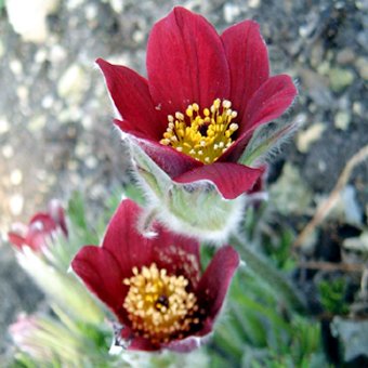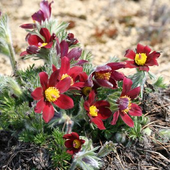 - 学名: Pulsatilla vulgaris、 分類: キンポウゲ科オキナグサ属