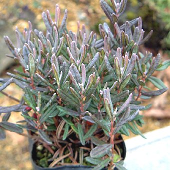 - 学名: Andromeda polifolia ‘Blue Ice’、 分類: ツツジ科ヒメシャクナゲ属