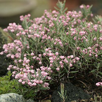 - 薄いピンク色のつぼ型の花を咲かせます。葉色が粉白を帯びていて白緑色、紅葉時は桃色がかります。カラーリーフとして寄せ植え、庭植えに役立ちます。