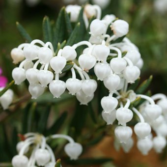 - 学名: Andromeda polifolia f. leucantha、 分類: ツツジ科ヒメシャクナゲ属