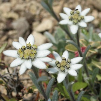 - 「高麗薄雪草(コウライウスユキソウ)」は、朝鮮半島の雲岳山産といわれるウスユキソウで、整った花型で、全体に絹毛が多く、黄色と黒の頭花が目立ちます。鉢植えやロックガーデンに向きます。