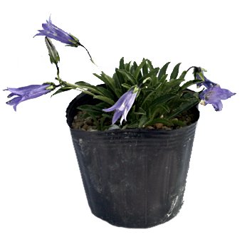 - 「千島桔梗(ちしまぎきょう)」は、本州中部以北、千島、サハリン、カムチャッカ、アリューシャン、アラスカに広く分布する高山植物で、艶のある葉の間から、紫色の大きな花を咲かせます。こちらは細葉で花つきが良いタイプです。