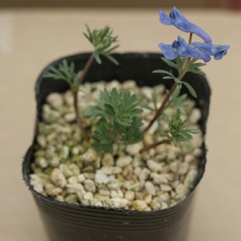 ヒマラヤ山脈(東部、西部)、ネパール、中国のチベットに自生するコリダリスの仲間です。細かく切れ込みの入った葉と、コンパクトな姿、何よりターコイズブルーの花色がとてもきれいな花です。鉢植えやロックガーデンに向きます。自生地標高・2,500~5,300m