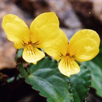 - 北海道の蛇紋岩地にあるオオバキスミレの亜種。葉は光沢があり、裏が赤紫色になります。