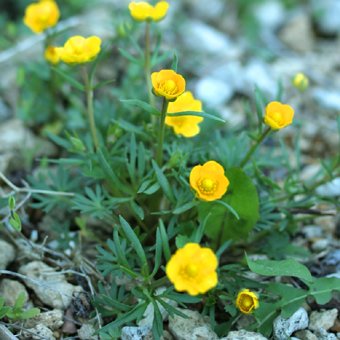 「北岳金鳳花(きただけきんぽうげ)」は本州の北岳・間ノ岳に生えるキンポウゲで、日本固有の高山植物です。細烈した繊細な根生葉が特徴的です。