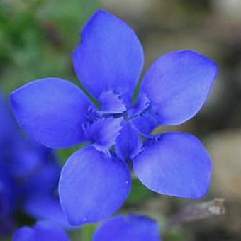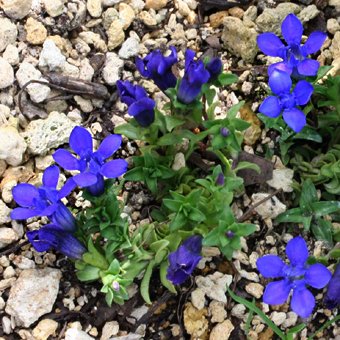 - 高山の湿った草地に生える小型のリンドウで、濃紺の花色がなんとも美しい花。北海道大雪山系、利尻山、夕張岳に分布します。別名・クモマリンドウ