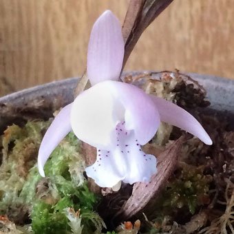 - 「独花蘭」は、ホテイランを大きくしたような姿の野生蘭で、秋に1枚葉を出して成長し春先に桃色の花を咲かせます。夏は地上部が枯れ休眠します。