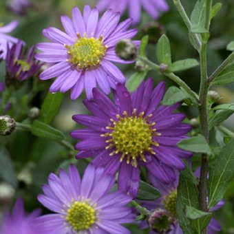 エゾノコンギクは、秋に薄紫~青紫色の花を咲かせる菊の仲間で、茎は上部で良く分岐したくさんの花を咲かせます。本州に分布するノコンギクの北方型変種で、葉の中心から下が急に細くなる特徴があります。こちらは濃色紫タイプです。