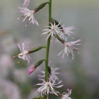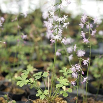 - エンシュウハグマは、遠州(静岡県西部)に多く自生することからつけられた名前の山野草で、秋に30cmほど花茎をのばして花を咲かせます。細長い花弁は渦を巻くようにカールして、小さな風車のように見えます。