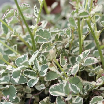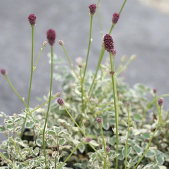 小型のワレモコウ「タンナワレモコウ」の白覆輪品種です。小さくて葉が可愛らしく、夏のガーデンにぴったりです。カラーリーフや、一点飾り、寄せ植え、苔玉などで活躍します。