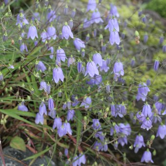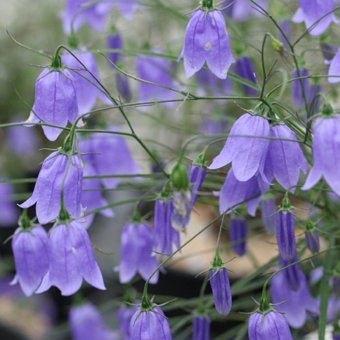 「岩沙参(いわしゃじん)」は、秋の山野草を代表する花で、風に揺れる姿がとても趣き深い花です。鉢植えや、寄せ植え、ロックガーデンに最適です。本州中部~東海地方の山地の沢や渓谷の岩場に自生します。