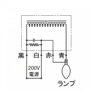 低力率安定器にコンデンサを内蔵して、力率を改善したものです。力率は90%と非常に良く、水銀ランプの点灯回路として経済的です。また、コンデンサには保護機能をつけて安全性を高めています。
