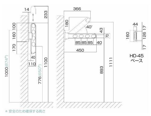 長さ:450mm 3段活用(斜め上使用-水平使用-収納) 機能や操作性はHC型と同等。徹底的にコストパフォーマンスを追求しました。