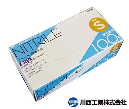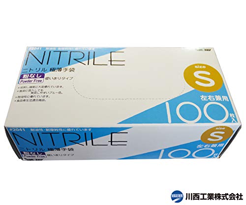 川西工業 ニトリル極薄手袋 粉なし 100枚入 #2041 ブルー S