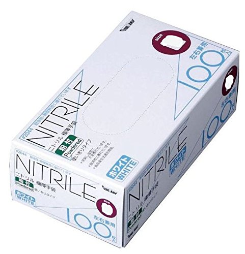 川西工業 ニトリル 極薄手袋 粉付 100枚入 #2044 ホワイト L