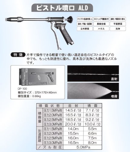 - 製品の特徴:ドリフト低減対策△、ストップ機能付、直射/噴霧切り替え