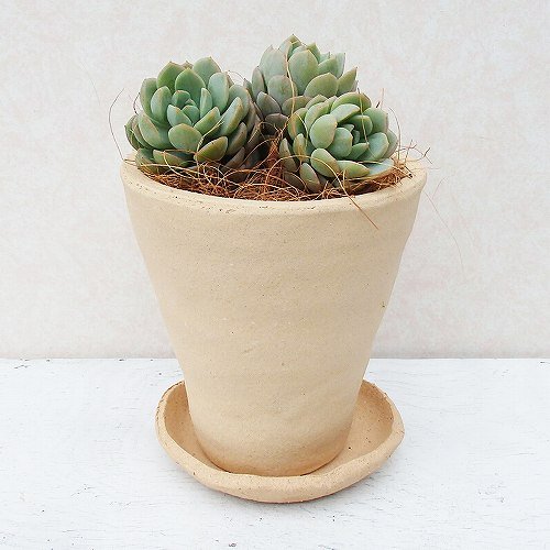 4号 ナチュレS 手造り植木鉢 受け皿付き 常滑焼