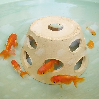 水槽のインテリア、陶器のフィッシュランド。メダカ・金魚が窓から覗くしぐさがかわいい!職人が一点ずつ手作業の製作のため、色目、サイズに差異があります。