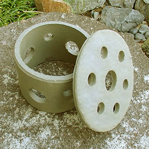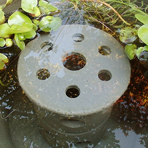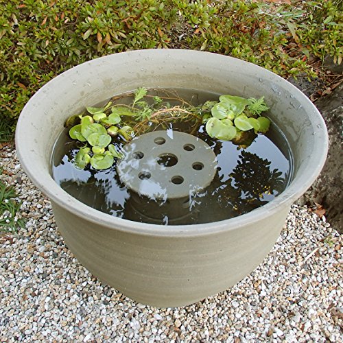 水槽のインテリア、陶器のフィッシュランド。メダカ・金魚が窓から覗くしぐさがかわいい!この商品は、夏場の炎天下でも水温が上がりにくくなっています。メダカの隠れ家、産卵場所(中にシュロ皮を入れて)としてご使用いただけます。睡蓮鉢が深く、めだかの家を上方にするには鉢台をご使用ください。職人が一点ずつ手作業の製作のため、色目、サイズに差異があります。