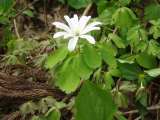 アズマイチゲは、キンポウゲ科の山地の林下に生える多年草です。アズマイチゲの花期は4~5月で、花柄の頂きに1個、白色で径3~4cmの花を咲かせます。アズマイチゲの和名は東国のイチゲという意味ですが、北海道以北の寒地にもおよびます。キクザキイチゲやイチリンソウなどに似ています。
