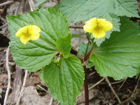 亜高山の湿り気のある草地に生える多年草で、雪が解けた山奥の道ばたに、やまぶき色の花を付け群生しているのが見られます。高さが15cm内外で、花は淡黄色で5弁あり、唇弁に紫条があります。さっと茹でると、軽いぬめりと快い歯触りがあります。
