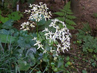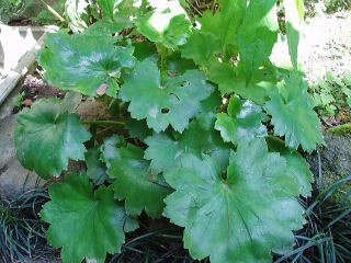 低山から高山帯までの谷川の流水際の岩上や湿った岸壁、崖地などに生える多年草です。葉がフキに似て、渓流で水しぶきがかかるような岩場にへばりつくように生えている様子から「イワブキ」とも呼ばれています。葉は根元から出る根生葉で、長い柄があり、円形で粗い切り込みがあり、全体に毛がありみずみずしいです。葉の裏側は白色か紫色をしています。花は夏から秋に、花茎を30cmほど伸ばして円錐状に白い花をまばらにつけます。葉は、アクが少なく美味しい山菜です。葉わ良く洗い、水気を取り、そのまま片面に衣をつけて天ぷらにします。