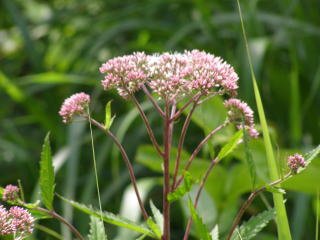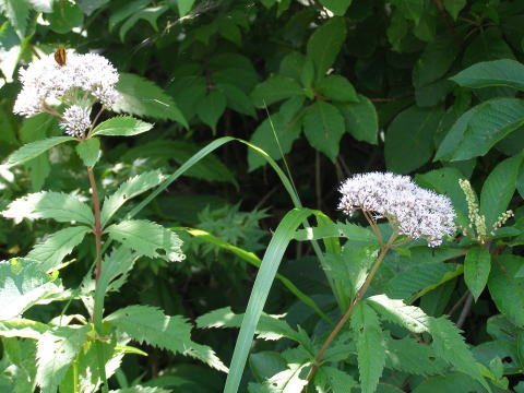 キク科の多年草で、山間の湿田や湿った草原に多く生えます。茎は直立し、高さ50cm内外になります。花は、8~10月にかけて咲き、淡紅紫色に帯びるのが普通ですが、濃い色ものからほぼ白色ものまであります。サワヒヨドリは、秋の七草のフジバカマの仲間です。