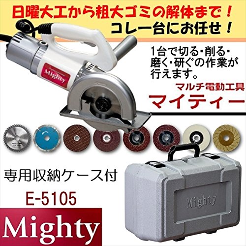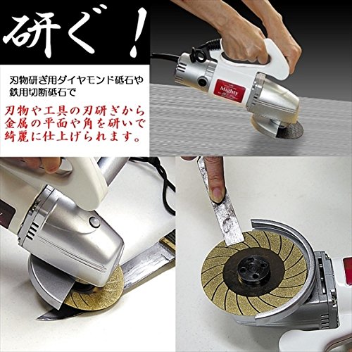 ●付属品/丸ノコ安全カバー(120mm)・磨き用安全カバー(120mm)・木工用丸ノコ刃(105mm)・石用ダイヤモンドカッター(105mm)・鉄用切断砥石(100mm)・鉄用切削砥石(100mm)・サンドペーパー仕上用(100mm)・サンドペーパー荒用(100mm)・フェルトバフ(100mm)・刃物研ぎ用ダイヤモンド砥石(100mm)・フランジ(15/20兼用)・補助ハンドル・六角棒レンチ付カニ目スパナ