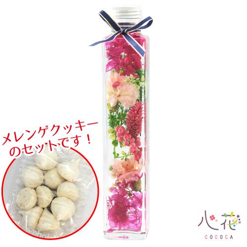 <マゼンダ>【花材】カーネーション(ピンク)・紫陽花(ピンク)・ペッパーベリー・ポアプランツ(ピンク) ■母の日特典について【メレンゲクッキー】原材料:卵白、グラニュー糖、ココナッツ、コンスターチ、塩