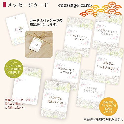 - 【メッセージカード指定について】「いつもありがとうございます」「HAPPY BIRTHDAY」「いつまでも元気でいてね」「フリーメッセージ用(無地)」のいづれかをお選び頂けます。