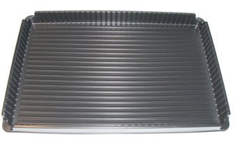 底面給水トレーです。サイズは外寸38.5cmx57.8cmx高さ4.9cm、内寸35.0cmx54.5cmx高さ4.9cmです。当店で販売のトレーシリーズ11穴、12穴、18穴、24穴、35穴に適合しています。トレーに入れたまま、底面給水が出来るので、安定を確保しながら、鉢内湿度を高められます。
