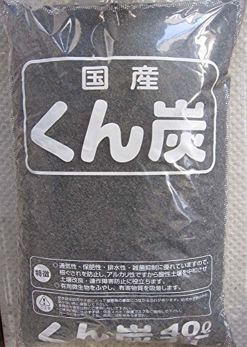 もみがらクン炭の40Lです。焼き過ぎての炭にならないように、もみがらの形を残して焼き上げました。 焼き過ぎると唯の炭になってしまい、植物の根に良いバクテリアが住みにくいので、バクテリアがより多く付着するように、弊社がメーカーに依頼して、焼き過ぎないで作成しました。薔薇愛好家、菊愛好家、ブルーベリー愛好家、その他こだわり栽培をしている方に大変好評な良質なクン炭です。