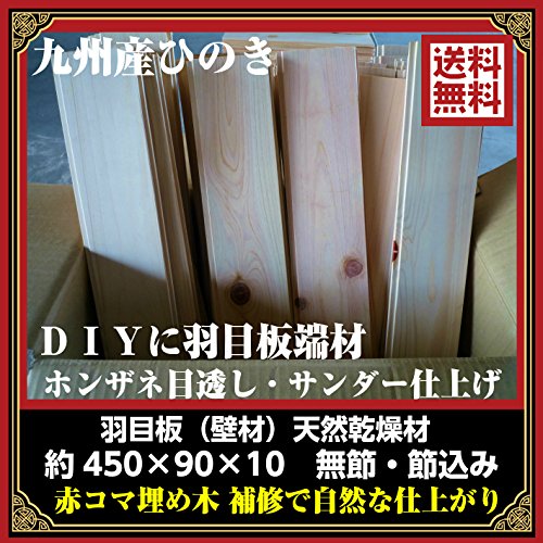 九州産:桧羽目板 端材(無節・節・埋め木込)本実目透かし約450* 90*10:サンダー仕上/40枚:約1.62平米