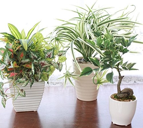 - キッチン、アメニティ、玄関、リビング、やオフィスにも好適。オリヅルランを含む3点のセットにしてお届けします。
