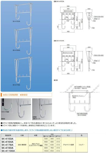 新協和 バルコニー物干金物 (自在・静音型) SK-4178A 1本 シルバー 物干し金物