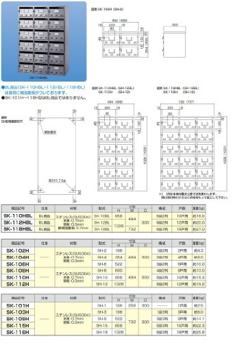 こちらの商品画像はSK-118HBL(18戸用)の画像を使用しております。