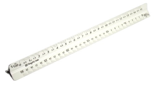 ●数値が判別しやすい総数字。●レーザー印字により高精度な目盛。製図、縮尺図面の読み取りに。●縮尺して描かれた図形や図面を実際の大きさで測れます。材質:アルミ●縮尺:1/100、1/200、1/250、1/300、1/500、1/600