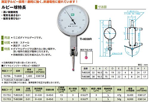 新潟精機 SK 測定工具 TI-8038R 151703 ダイヤルインジケータ