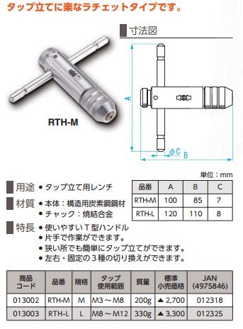 新潟精機 SK 測定工具 RTH-M 013002 ラチェット式タップホルダ