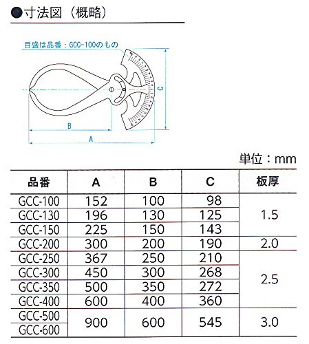 - 仕様:先端をクロスさせて使用できるので外径・内径・厚さ等の測定や寸法移しに便利です。