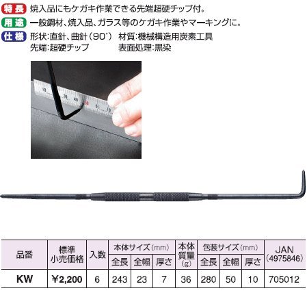 新潟精機 SK 一般測定工具 KW 超硬チップ付ケガキ針