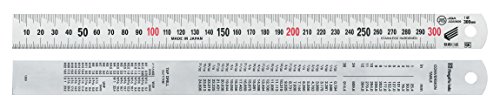 ●読みやすい段差型目盛。サビに強いステンレス材。●大きく、スッキリと数字が表示されているので数値が読み取りやすい。寸法測定、線引き、ケガキ作業に。150~l00Omm :上段1mmピッチ、下段0.5mmビッチ●15002000mm:上段1mmピッチ、下段1mmピッチ●材質:ステンレスSUS420J2(硬質クロムメッキ仕上)