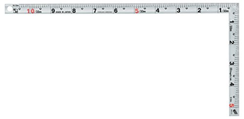 ●高所作業に最適なセーフティーロープ取付穴付。●直角測定に適した両面尺目盛。●表面と裏面の目盛の位置が同じく、返し測定に便利。尺相当目盛●材質:ステンレス●長手(妻手)x幅x厚さ(mm):340(165)x15x1.3●表目盛 長手 外目盛:1尺 内目盛:- 妻手 外目盛:5寸 内目盛:-●裏目盛 長手 外目盛:1尺 内目盛:- 妻手 外目盛:5寸 内目盛:-●精度 目盛側面の直角度:100mmにつき0.1mm以下 長さの許容値:10/33m±0.2mm